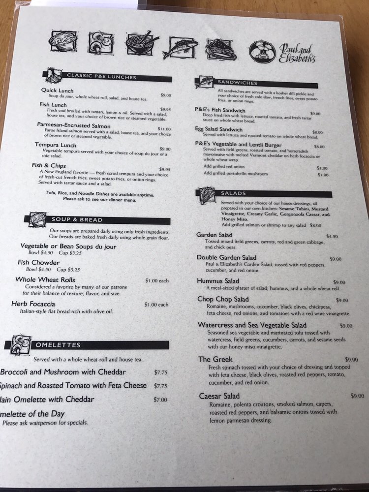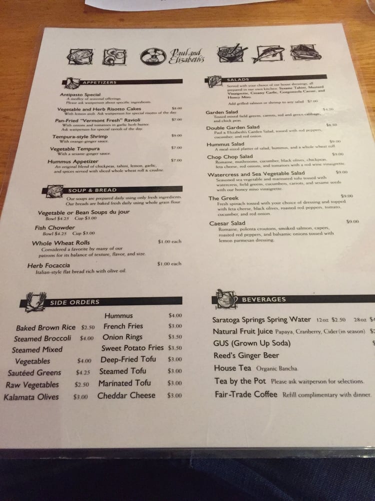 Welcome to Paul and Elizabeth's, nestled in the heart of Northampton, MA. This charming eatery specializes in seafood soups and hearty salads, inviting guests into a cozy atmosphere that feels like home. The standout offerings include the rich Fish Chowder and the inventive Kale Caesar Salad adorned with smoked salmon and polenta croutons. For those seeking heartier options, their famous Fish and Chips – featuring fresh scrod in a crispy tempura batter – is a New England classic that never disappoints.